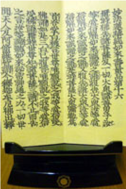 - 二、私たちは、宇宙のすべての功徳を納めている南無妙法蓮華経を正しい本尊として、合掌礼拝いたします。